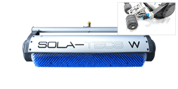 Die SOLA-TECS W ist ein mobiles, nur mit Wasser angetriebenes Bürstenwalzen-System zur Reinigung und Pflege von Photovoltaikanlagen. Die professionelle Reinigung erfolgt mit mineralfreiem (demineralisiertem) Wasser, in der Regel ohne Zusatz von Chemikalien. Der SOLA-TECS W wird über einen Hochdruckreiniger in Rotation versetzt und versorgt somit die Bürstenwalze mit Wasser, welches gleichzeitig zur Reinigung der PV-Anlage dient.