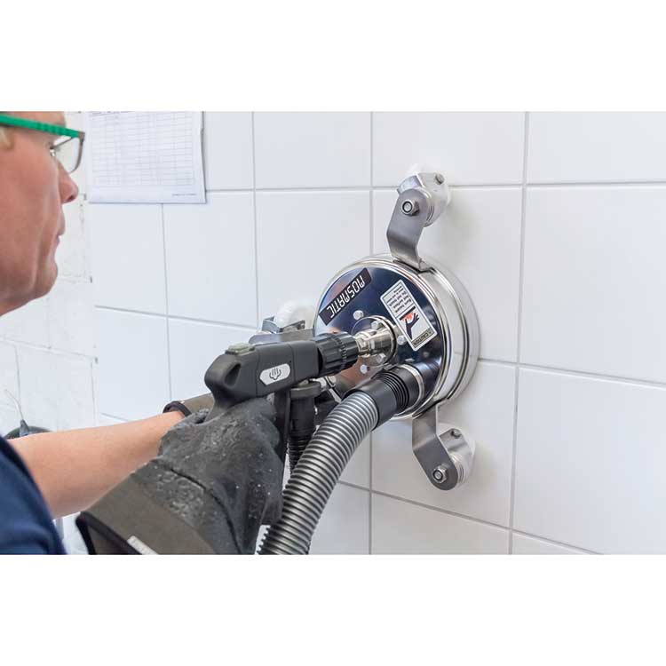 Der Flächenreiniger FL-DAR ist die neuste Entwicklung aus dem Hause Mosmatic. Trotz Dampf können Flächen- und Wandreinigungen trocken vorgenommen werden. Der Flächenreiniger zeichnet sich durch die Qualitätskomponenten wie Drehgelenk und Rotorarm aus. Ebenfalls ein absoluter Pluspunkt ist die 4 - 5 fache Zeitersparnis gegenüber einer Lanze.