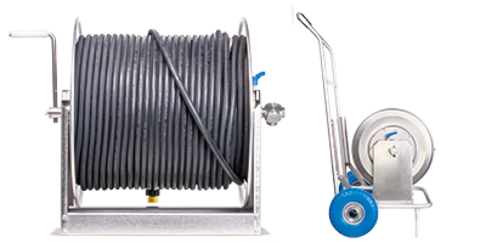 Bitte beachten Sie bei der Auswahl von Schlauchtrommeln, dass sich die Parameter Schlauchlänge, Nennweite (NW) sowie der max. zulässige Druck gegenseitig bei der Trommellauslegung beeinflussen.