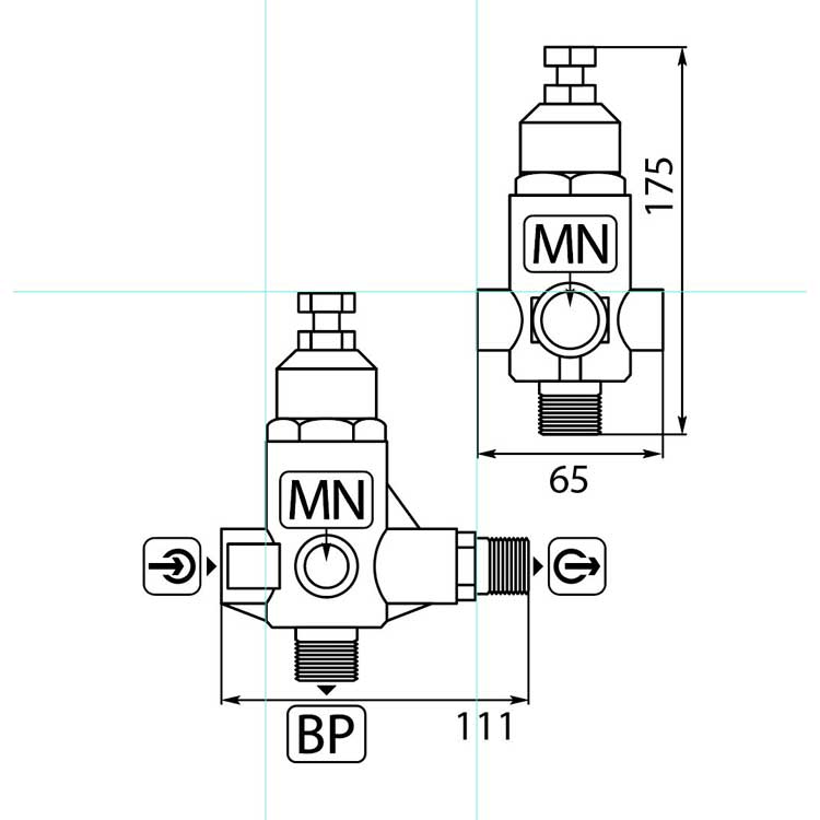 Unloader K-1 9-41 Lit. 250 bar 3/8"IG:1/2"AG